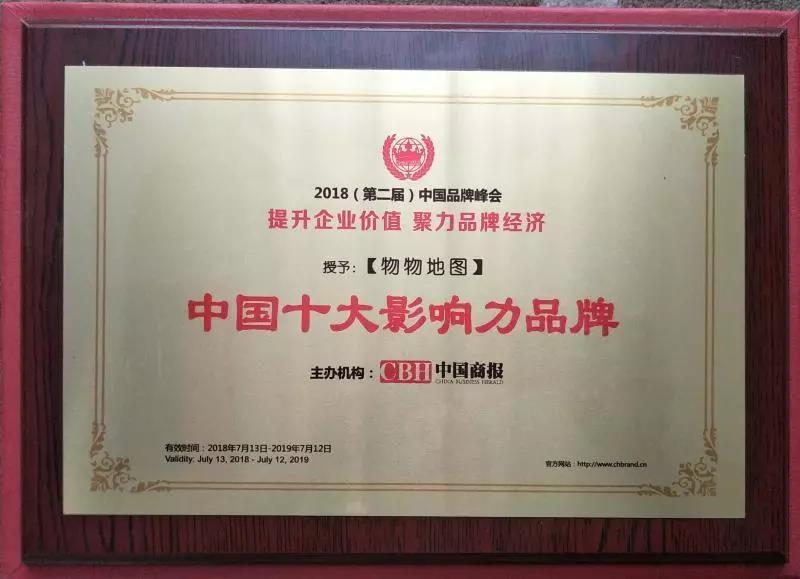 新榮譽(yù) 新鞭策 新起點(diǎn) --祝賀【物物地圖】榮獲“2018中國(guó)十大影響力品牌”